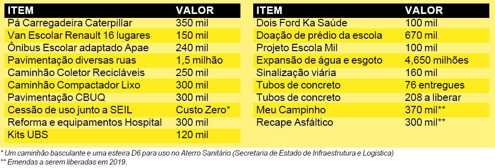 Confira abaixo a relação de benefícios e conquistas recebidas por Primeiro de Maio:
